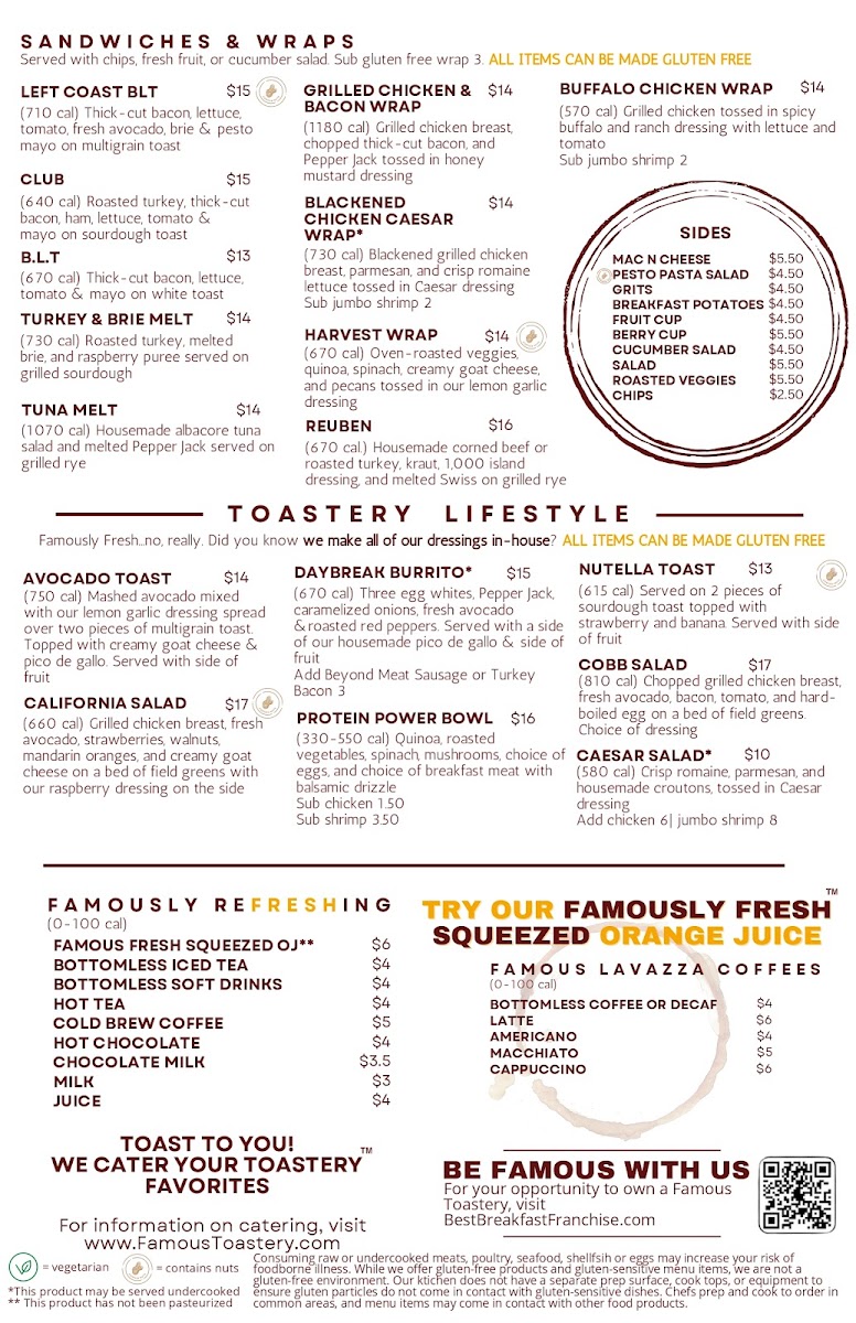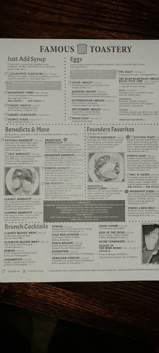 Introducing the menu at Famous Toastery, located in the heart of Davidson, NC, promises a delightful culinary journey. This charming locale specializes in brunch, offering a diverse range of options that cater to all palates.